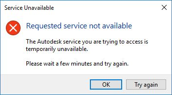 캐드에 로그인 후 "요청한 서비스를 사용할 수 없습니다." 오류 발생.