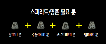 스피릿을 제작하는데 필요한 룬은 다음과 같습니다.