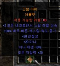 | 캐스터 아뮬렛 | 5~10% 캐스팅 속도 증가 마나 재생 4~10% +10~20 마나 |