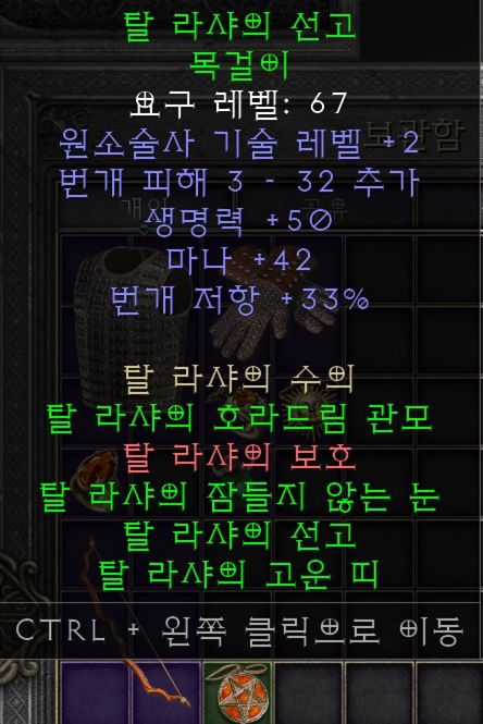 탈라샤 아뮬렛(세트) 2세트 효과 : 시전속도 +10% 탈라샤 아뮬렛입니다. 풀세트로 끼면 당연히 좋지만 단독으로 껴도 엄청 손해보지는 않습니다. |