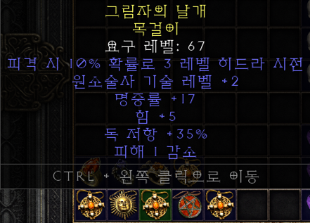 레어 아뮬렛 게임을 진행하다 보면 종종 먹는 레어 아뮬렛 중에 옵션이 좋은 놈들이 가끔 나옵니다. 레어 아뮬렛에는 올스킬/레지/스텟/패캐 등이 붙은 것을 상급으로 쳐줍니다. |