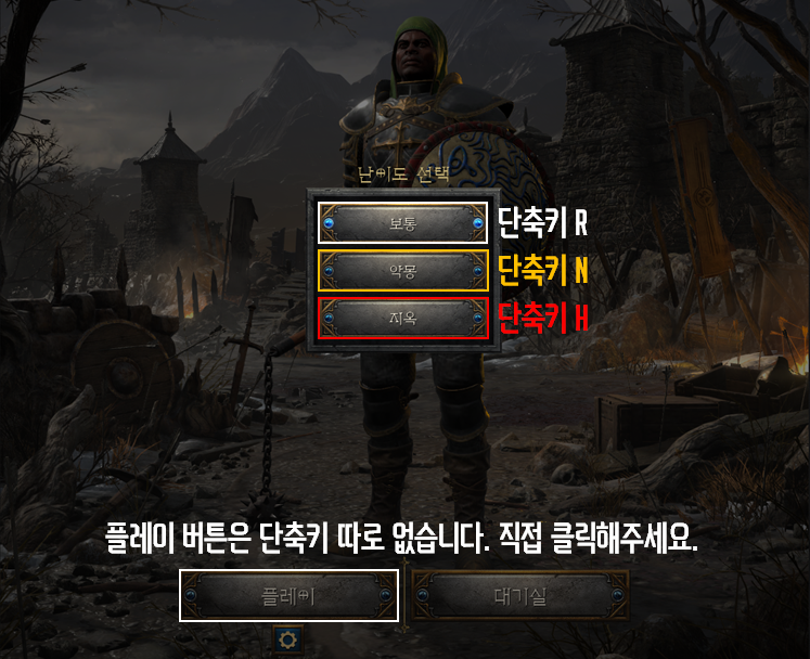 자동 방생성을 할때 [플레이]를 누른 후 [보통/악몽/지옥] 난이도를 선택하는데,