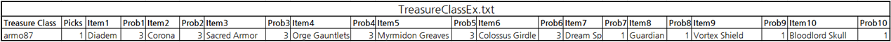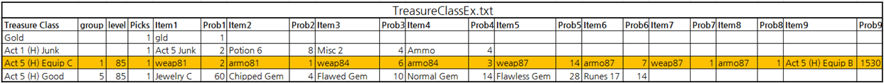 ([TreasureClassEx]의 Level 열에 적힌 숫자는 해당 TC의 레벨입니다.)