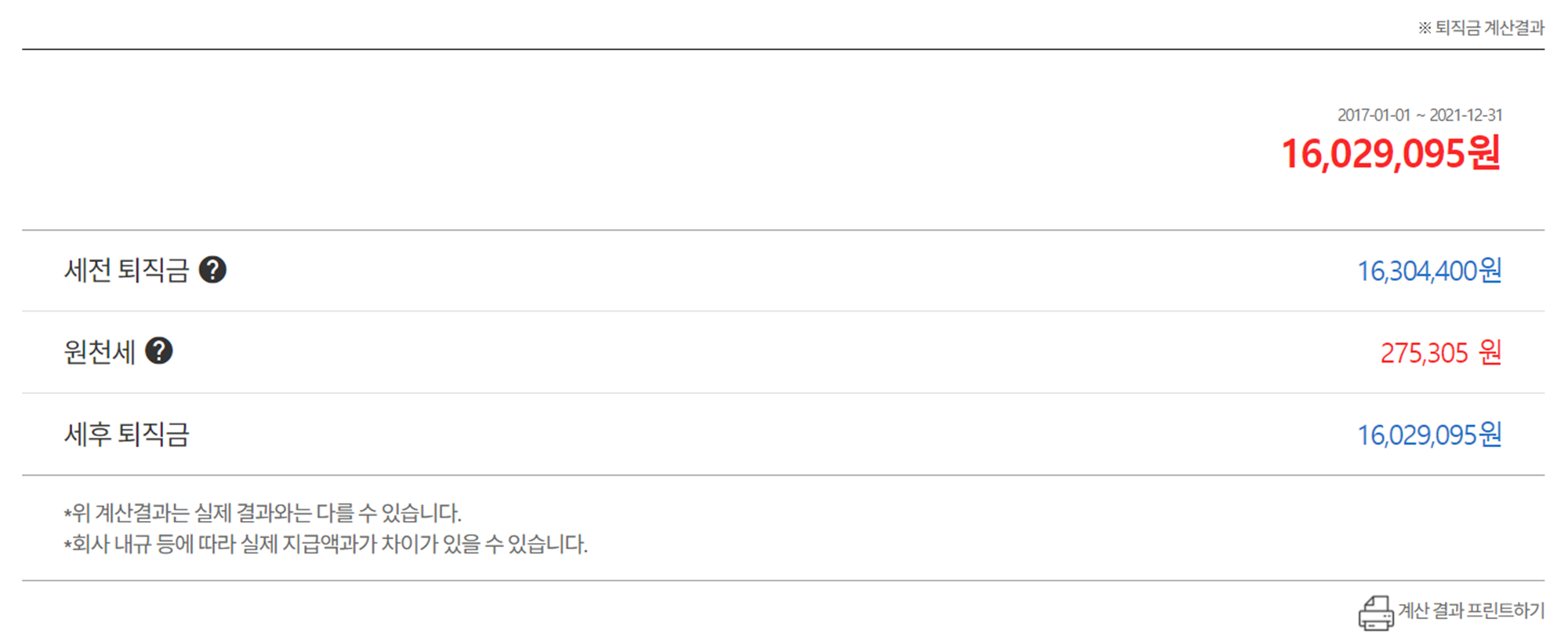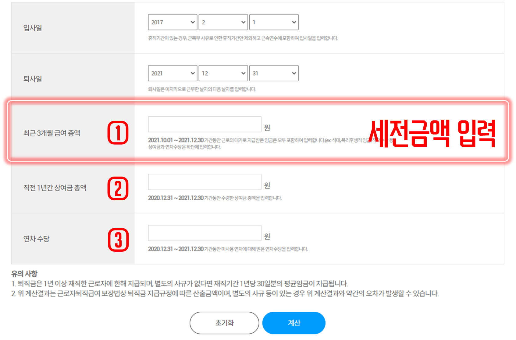 세전 퇴직금과 세후 퇴직금을 모두 계산해줍니다!!