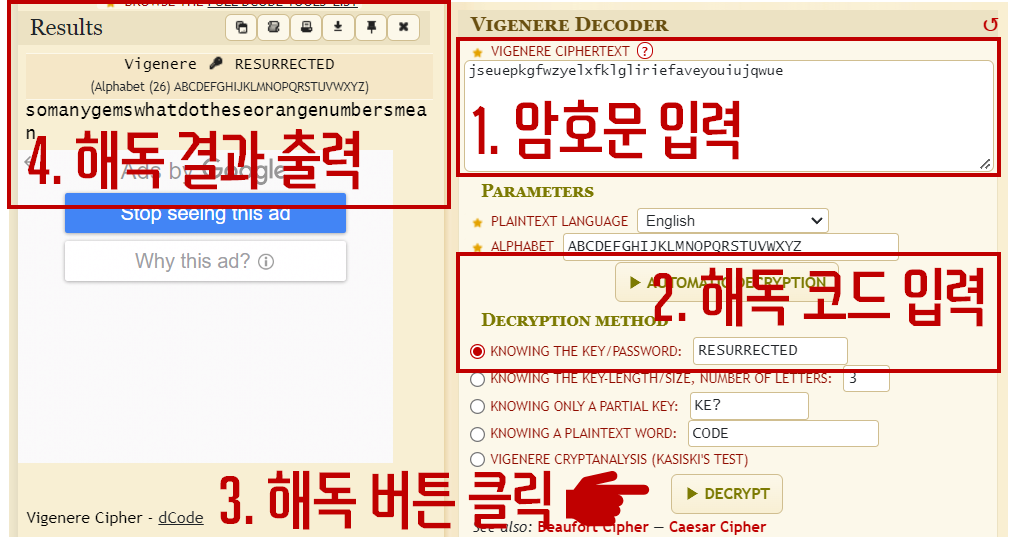 비네르제 암호문은 아래의 웹사이트를 통해서 해독할 수 있습니다.