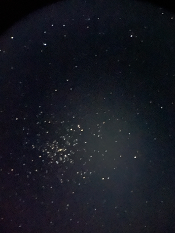 호핑난이도 중 호핑요령 카시오페아자리 델타 근처에 있어서 위치 잡는 것은 크게 어렵지 않으나, 근처에 별이 원체 많기도 하고 산개성단을 구성하는 밝은 별 네개를 제외하면 육안으로는 거의 보이지 않기 때문에 판별하는 것이 쉽지 않았음. 여러차례 걸쳐 연습하면 찾는게 훨씬 쉬어질 것으로 보임. 관측기록 처음에 봤을 떄는 이게 맞나 긴가민가 했는데 핸드폰으로 찍어보니 확실히 맞는 것을 알 수 있었음. |